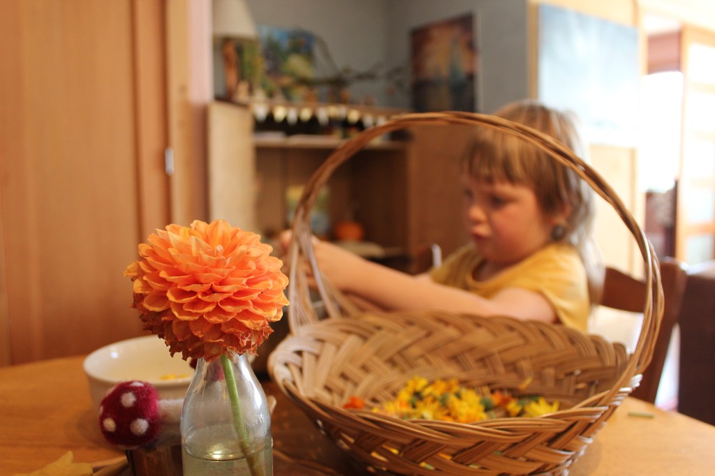 -Gather fresh Calendula flowers. The strongest medicine is in the green base of the Calendula flower, so be sure to select whole flower heads with bright orange or yellow petals. If you don’t have Calendula in your garden you can buy dried Calendula flowers at a healthfood store.