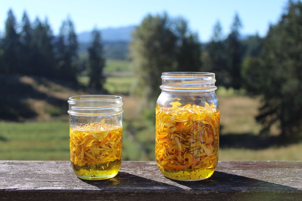 This golden healing oil can be used as a body oil for dry skin or can be added to a beeswax balm to create a salve for cuts and bruises.